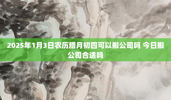 2025年1月3日农历腊月初四可以搬公司吗 今日搬公司合适吗搬公司是一个重要的时刻,选择良辰吉日对于公司的发展很有意义,2025年1月3日搬公司是良辰吉日吗?2025年1月3日搬公司日子好吗?卦无忧为您提供搬公司吉日吉时...2024-11-30