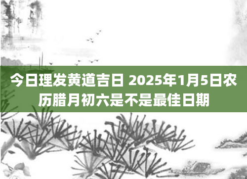 今日理发黄道吉日 2025年1月5日农历腊月初六是不是最佳日期当日适合理发根据该日的黄历信息分析可得,2025年1月5日为黄道日,黄道日即是民间的黄道吉日,吉日办事可一顺百顺,对事情有着正向积极的促进作用,因此2025年1...2024-11-30
