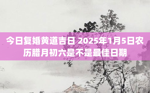 今日复婚黄道吉日 2025年1月5日农历腊月初六是不是最佳日期当日适合复婚根据该日的黄历信息分析可得,2025年1月5日为黄道日,黄道日即是民间的黄道吉日,吉日办事可一顺百顺,对事情有着正向积极的促进作用,因此2025年1...2024-11-30