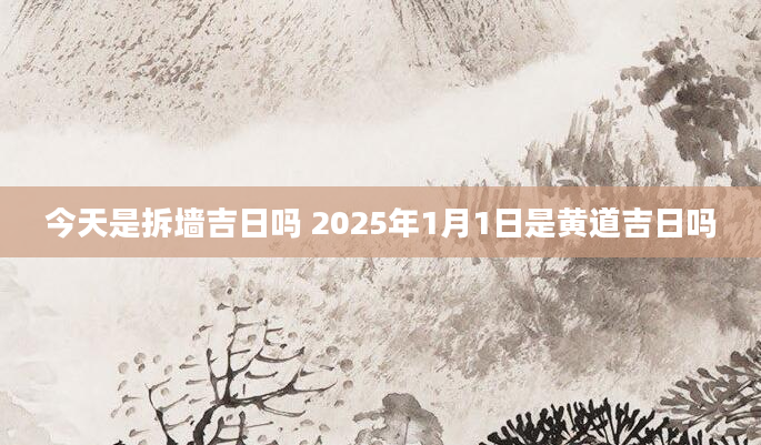 今天是拆墙吉日吗 2025年1月1日是黄道吉日吗在黄历中,“坏垣”指的是拆墙的行为,那2025年1月1日拆墙好不好?2025年1月1日是拆墙吉日良辰吗?卦无忧为您提供拆墙吉日吉时,可收藏查看哦!当日适合拆墙根...2024-11-30