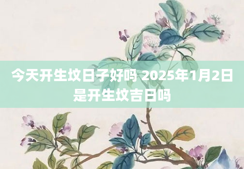 今天开生坟日子好吗 2025年1月2日是开生坟吉日吗开生坟是指人还没有死,就先找地方作坟墓。是开造坟墓的意思,指开造坟墓的破土动工,开生坟也是需要找一个吉日进行,在黄历中宜开生坟就是这天是适合开生坟的日子,忌开生...2024-11-30