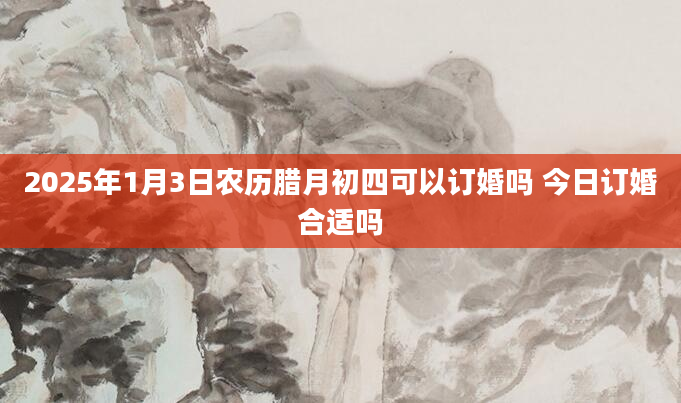 2025年1月3日农历腊月初四可以订婚吗 今日订婚合适吗订婚是结婚前的一种仪式,包括订立婚书、交换礼物、选择良辰吉日完婚等;2025年1月3日订婚日子好吗?2025年1月3日是订婚吉日吗?卦无忧为您提供订婚黄道吉日,...2024-11-30