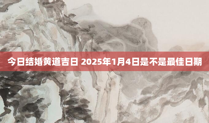 今日结婚黄道吉日 2025年1月4日是不是最佳日期当日适合结婚根据该日的黄历信息分析可得,2025年1月4日为黄道日,黄道日即是民间的黄道吉日,吉日办事可一顺百顺,对事情有着正向积极的促进作用,因此2025年1...2024-11-30