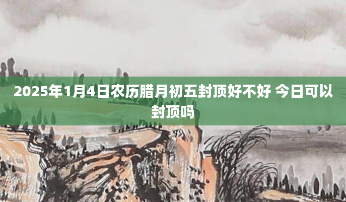2025年1月4日农历腊月初五封顶好不好 今日可以封顶吗封顶,其本指建筑物主体结构已经完工,也指不许超过规定的极点。2025年1月4日封顶好不好?封顶选什么日子好?卦无忧帮您查询适合封顶的日子。当日不适合封顶根据该日...2024-11-30
