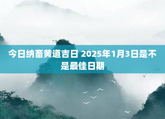 今日纳畜黄道吉日 2025年1月3日是不是最佳日期当日适合纳畜根据该日的黄历信息分析可得,2025年1月3日的黄历信息“宜”中有纳畜这一事项,吉日做事可达到事半功倍的效果,因此2025年1月3日适合纳畜,可以选...2024-11-30最新文章