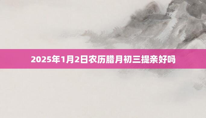 2025年1月2日农历腊月初三提亲好吗当日不适合提亲根据该日的黄历信息分析可得,2025年1月2日为黑道日,就民间说法来看,黑道日不利行事,若这一日提亲,可能会有不好的影响,但黑道日并不是完全忌讳提...2024-11-30
