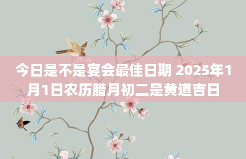 今日是不是宴会最佳日期 2025年1月1日农历腊月初二是黄道吉日当日适合宴会根据该日的黄历信息分析可得,2025年1月1日为黄道日,黄道日即是民间的黄道吉日,吉日办事可一顺百顺,对事情有着正向积极的促进作用,因此2025年1...2024-11-30