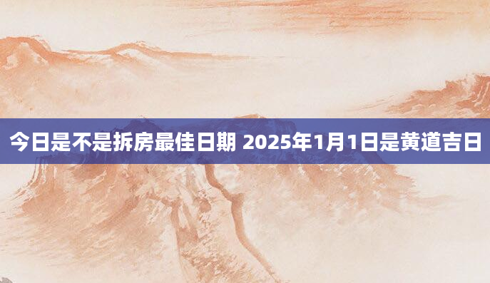 今日是不是拆房最佳日期 2025年1月1日是黄道吉日当日适合拆房根据该日的黄历信息分析可得,2025年1月1日为黄道日,黄道日即是民间的黄道吉日,吉日办事可一顺百顺,对事情有着正向积极的促进作用,因此2025年1...2024-11-30