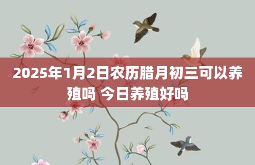 2025年1月2日农历腊月初三可以养殖吗 今日养殖好吗养殖是指培育和繁殖动植物。养殖包括家畜养殖、家禽养殖、水产养殖和特种养殖等种类。2025年1月2日养殖好不好?养殖选什么日子好?卦无忧帮您查询适合养殖的日子。当...2024-11-30