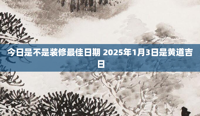 今日是不是装修最佳日期 2025年1月3日是黄道吉日当日适合装修根据该日的黄历信息分析可得,2025年1月3日为黄道日,黄道日即是民间的黄道吉日,吉日办事可一顺百顺,对事情有着正向积极的促进作用,因此2025年1...2024-11-30