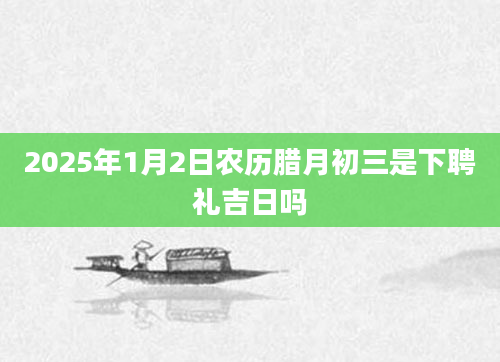 2025年1月2日农历腊月初三是下聘礼吉日吗当日不适合下聘礼根据该日的黄历信息分析可得,2025年1月2日为黑道日,就民间说法来看,黑道日不利行事,若这一日下聘礼,可能会有不好的影响,但黑道日并不是完全忌...2024-11-30