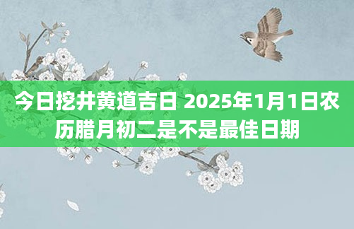 今日挖井黄道吉日 2025年1月1日农历腊月初二是不是最佳日期当日适合挖井根据该日的黄历信息分析可得,2025年1月1日为黄道日,黄道日即是民间的黄道吉日,吉日办事可一顺百顺,对事情有着正向积极的促进作用,因此2025年1...2024-11-30