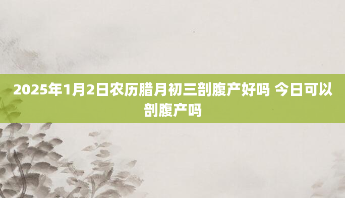 2025年1月2日农历腊月初三剖腹产好吗 今日可以剖腹产吗迎接新生命的到来是每个家庭既期待又紧张的日子,那么2025年1月2日剖腹产好不好?剖腹产选什么日子好?卦无忧帮您查询适合剖腹产的日子。当日不适合剖腹产根据该日的...2024-11-30
