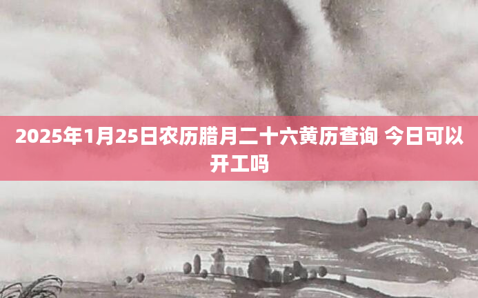 2025年1月25日农历腊月二十六黄历查询 今日可以开工吗我们做事都讲究天时地利,那2025年1月25日开工好不好?2025年1月25日开工吉时是什么时候?卦无忧为您提供开工吉日吉时查询,把握天时,开工顺利!当日不适合...2024-11-28最新文章