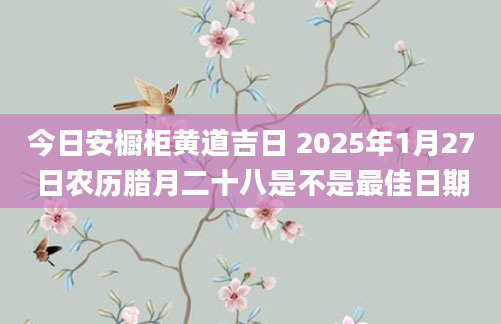 迁居黄道吉日 2025年1月27日是不是最佳日期当日适合迁居根据该日的黄历信息分析可得,2025年1月27日为黄道日,黄道日即是民间的黄道吉日,吉日办事可一顺百顺,对事情有着正向积极的促进作用,因此2025年...2024-11-28