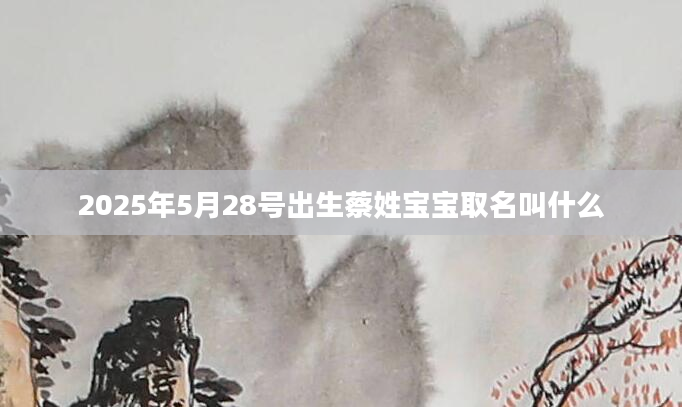 2025年5月28号出生蔡姓宝宝取名叫什么给婴儿起名,首先要征求父母亲意见,家族里有什么讲究,有什么忌讳的字,有什么期望值,是否取小名;给成年人改名,由于涉及到证书、档案等,建议采用改字不改音起名办法,...2024-12-13
