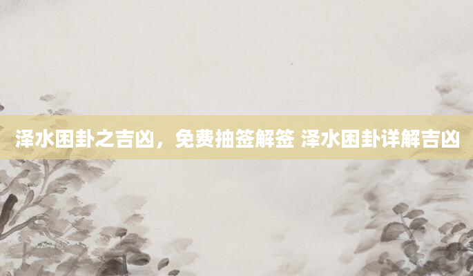 泽水困卦之吉凶,免费抽签解签 泽水困卦详解吉凶泽水困卦为兑宫一世卦,兑上坎下,因为穷困,君子受困于小人,阳为阴蔽。泽水困卦的象征意义是什么?这里我们一起看下泽水困卦占筮吉凶解释方面的内容。泽水困卦辞占断:亨...2025-05-19