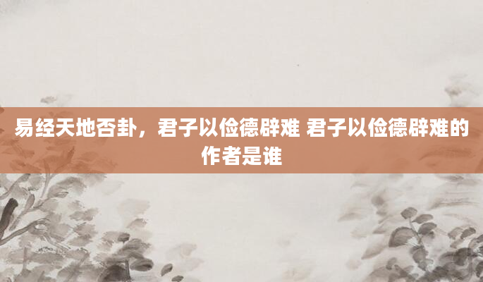 易经天地否卦,君子以俭德辟难 君子以俭德辟难的作者是谁天地否卦卦象征阻塞、不通。卦辞的意思是:天地否卦代表不和谐、不通畅的局面,不利于君子坚持正道。天地否卦象征着阻塞和不通,大人物和大事离去,小人物和小事聚集。否卦...2025-05-19