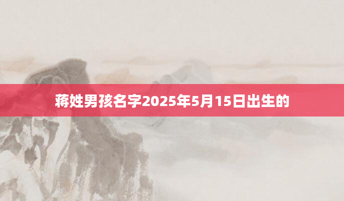 蒋姓男孩名字2025年5月15日出生的以婴儿出生的时辰起名。以干支纪时为素材,在辰时出生的孩子可以取名为辰生,而现在的父母们起名喜欢暗喻生时,那么在取名的时候可以用一个字,如朝、明、星、影、梦等。古...2024-12-26