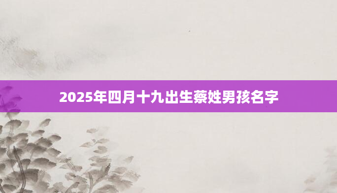 2025年四月十九出生蔡姓男孩名字人普遍有一种心理,希望名扬四海,名声在外,声名显赫。姓名作为人与事物的接触外延,在人生中起着一个支柱桥梁的作用。取个符合自己的好名字亦可以助你美名扬!那么下面让...2024-12-26
