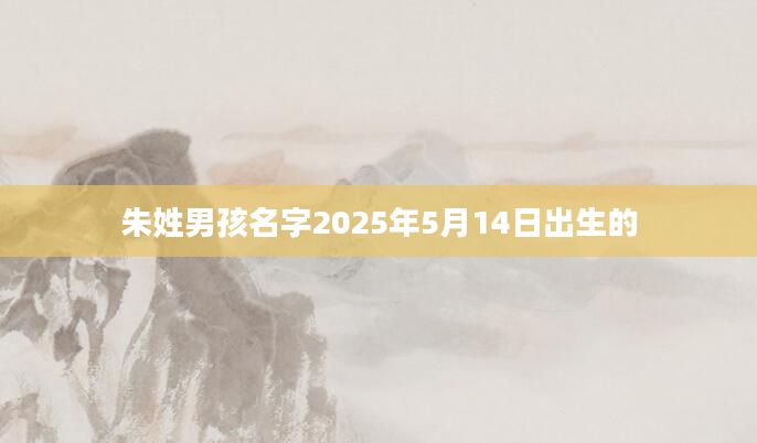 朱姓男孩名字2025年5月14日出生的名字是指人或者产品、物体的名称,姓名有广义与狭义之分,还有小名、别名、笔名和艺名等。广义的姓名包括公民的姓氏和名字以及法人和非法人团体的名称狭义的姓名仅指公民的...2024-12-26