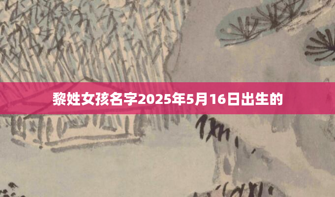 黎姓女孩名字2025年5月16日出生的以婴儿出生的时辰起名。以干支纪时为素材,在辰时出生的孩子可以取名为辰生,而现在的父母们起名喜欢暗喻生时,那么在取名的时候可以用一个字,如朝、明、星、影、梦等。古...2024-12-26
