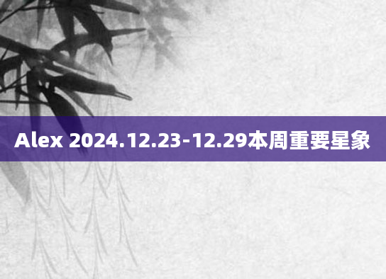 Alex 2024.12.23-12.29本周重要星象本周的星象出现了很多“困难星象”,意思是,星体跟星体之间的互动,出现了较为困难的相位,比如90度相位或者180度相位,因此本周的星象容易带来较多事情的发生,所以本周的星象综合来看,可能许多人的情绪波动起伏明显,甚至容易出现分歧,矛盾,以及也有一些让人错愕,惊讶,惋惜的事情发生。 木星的能量跟土星的...2024-12-23