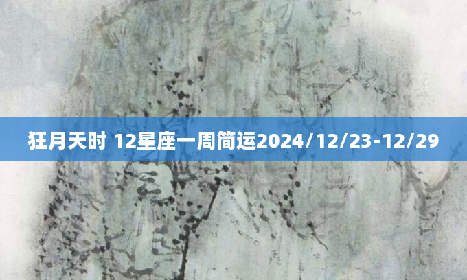 狂月天时 每日12星座运势2024.12.24每一天,我们都与星辰同在,它们见证着我们的成长与变化。想知道今天你的星座运势将如何为你的旅程增添色彩吗?快来查收我们的星座运势日报,与星辰同行,开启你的幸运之旅。在这里,你将发现每个星座的独特之处,它们将为你带来好运与祝福,让你的每一天都充满惊喜与希望。接下来和狂月天时一起来看看十二星座2024年1...2024-12-23
