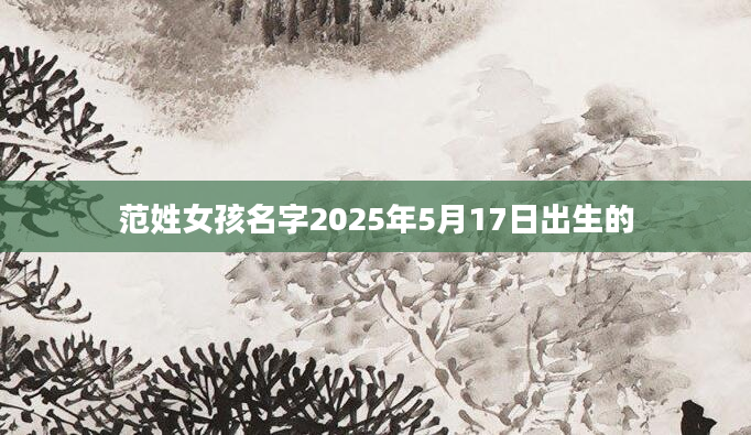 范姓女孩名字2025年5月17日出生的我们说过,生辰八字无法变动,但是人的命格是会受到多方因素所影响的。通过八字取名字就是一种更改命格的表现,生辰八字和阴阳五行之间紧密相连,二者之间形成一种相互有制...2024-12-22