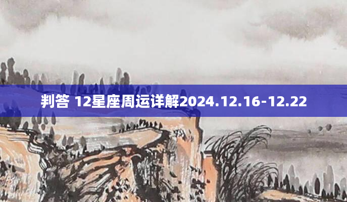 判答 12星座周运详解2024.12.16-12.22亲爱的各位朋友们,这周必须宣布一个好消息了!这么久的低迷可算有个出口了!今年的最后一次水逆,在周一就痛痛快快画下句号,不但标志着这一周是奋起直追,回血支棱的一周,也标志着2024年的末尾,将会更大程度上帮你实现愿望,接近目标。别怕,撒欢跑出去吧!下周不设关爱阵营,祝好运!参考太阳+上升。 红星阵营...2024-12-16