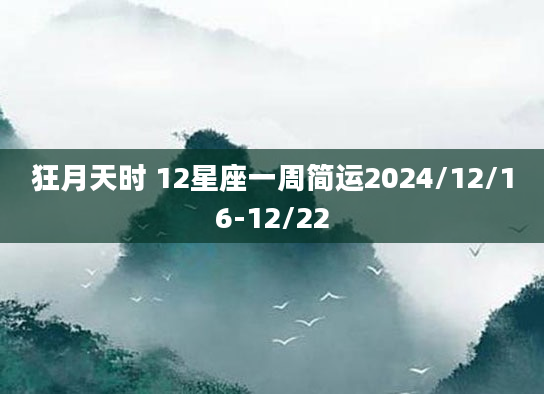 狂月天时 12星座一周简运2024/12/16-12/22【白羊座】 1 现状:事情得以结束。 2 健康:体力不足。 3 爱情:痛苦地分离。 4 未来:无法保持平衡。 5 心灵:顺其自然。 6 财富:多种赚钱方式。 【金牛座】 1 现状:重新再来。 2 健康:体质虚弱。 3 爱情:感情冷却。 4 未来:朝着目标前进。 5 心灵:抵御...2024-12-16