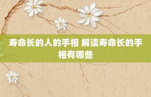 寿命长的人的手相 解读寿命长的手相有哪些在相术中,人们常常通过观察手相来推断一个人的性格特征、命运走向以及寿命长短。手相学是一门古老而神秘的学问,认为手掌的纹路、线条和结构可以揭示一个人的内在本质和未来命运。特别是当涉及到寿命长的人时,手相学提供了一些独特而有趣的特征。 双重生命线 手相有两条生命线的人,从生理方面看,此类人的体力充沛...2024-12-15