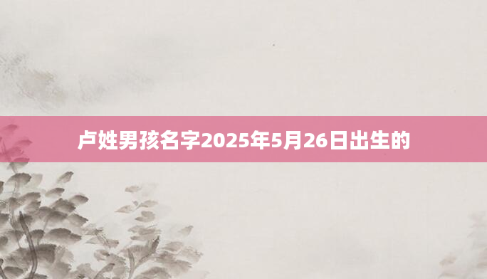 卢姓男孩名字2025年5月26日出生的平时找起名的人很多,但是其中绝大多数都对名字的真正意义并不了解,认为名字就是一个代号而已。名字,对于中国人来说,远不止代号那么简单。从命理学的角度来说,名字对于...2024-12-13