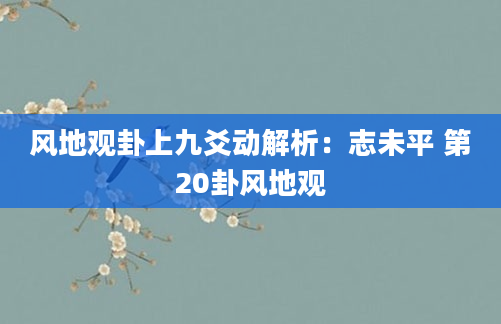 风地观卦上九爻动解析:志未平 第20卦风地观风地观卦上九爻动解析:观其生,君子无咎。《象传》曰:观其生,志未平也。是什么意思?风地观卦上九爻动有什么含义?下面,一起来看看风地观卦上九爻动解析。风地观卦解卦...2025-05-19