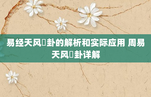 易经天风姤卦的解析和实际应用 周易天风姤卦详解《易经》中的天风姤卦(第五十四卦)是一个极具象征意义的卦象。卦象上为乾(天),下为巽(风),象征天风相遇。天风姤卦的核心主题是“遇”,表示事物的相遇、邂逅和开始...2025-05-19