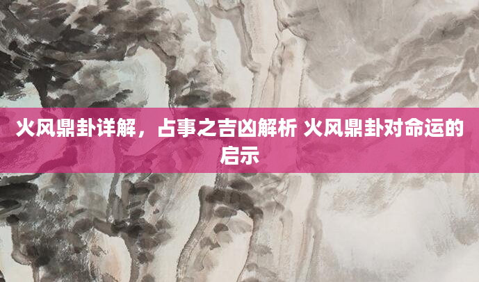 火风鼎卦详解,占事之吉凶解析 火风鼎卦对命运的启示火风鼎卦《序卦传》曰:“革物者莫若鼎,故受之以鼎”。火风鼎卦自《革》来,《兑》互《乾》金居上,火互《巽》木居下,有铸《鼎》之象。一起来看看火风鼎卦占事之吉凶解析...2025-05-19