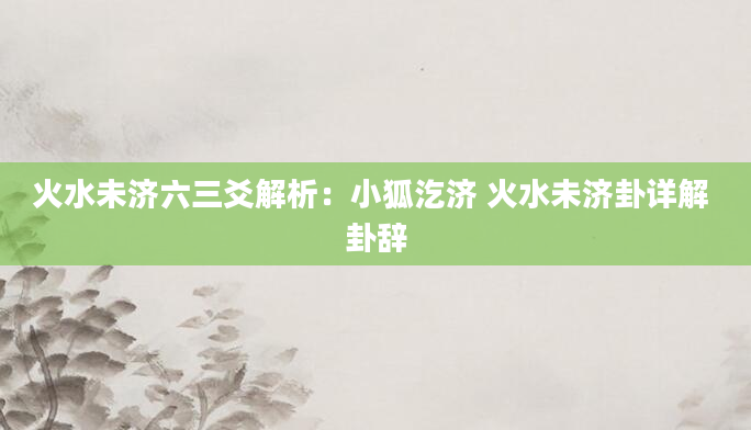 火水未济六三爻解析:小狐汔济 火水未济卦详解 卦辞火水未济卦中《未济》反《既济》,以《既济》之上卦,反而居下,《既济》之下卦,反而居上。火与水火水未济、相背不交,是炎上者未能成其炎,润下者未能致其润,火水未济卦...2025-05-19