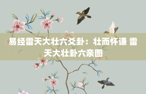 易经雷天大壮六爻卦:壮而怀谦 雷天大壮卦六亲图从卦名上来看,雷天大壮,天雷滚滚,就给人一种蓬勃的力量感。雷天大壮卦的前一卦为天山遁卦,遁就是退去的意思,当遇到外界形势不利的时候,我们需要退回来明哲保身;那为...2025-05-19