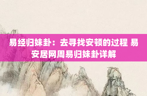 易经归妹卦:去寻找安顿的过程 易安居网周易归妹卦详解《归妹》卦所表达的核心意义是人们归属于家庭和社会集体中,通过合并和相聚而获得安全感和幸福感。它提醒人们重视家庭、亲情和人际关系,与他人建立良好的合作和沟通。在遇...2025-05-19