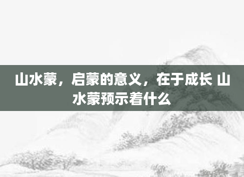 山水蒙,启蒙的意义,在于成长 山水蒙预示着什么《易经》作为中国古代哲学的瑰宝,其中,第四卦——山水蒙,更是为我们揭示了一个深刻的哲学主题:启蒙与成长。蒙卦的卦象由艮卦和坎卦组成,上卦为艮,象征山;下卦为坎,...2025-05-19