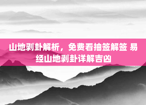 山地剥卦解析,免费看抽签解签 易经山地剥卦详解吉凶山地剥卦,洞察兴衰之理。山地剥卦,上艮下坤,有高山倾颓、剥落之象。从山地剥卦卦象上看,阴爻自下而上逐渐侵蚀阳爻,象征着小人势力的增长,君子之道的消损。一、六爻解...2025-05-19