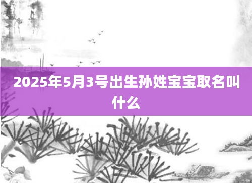 2025年5月3号出生孙姓宝宝取名叫什么以孩子的出生地点起名,其实是一种十分古老的方法。如被尊为“至圣先师’的孔子本名孔丘,字仲尼,名和字都来源于家乡曲阜东南的尼丘山。如有人因为生在洛阳而起名洛生,生...2025-02-08