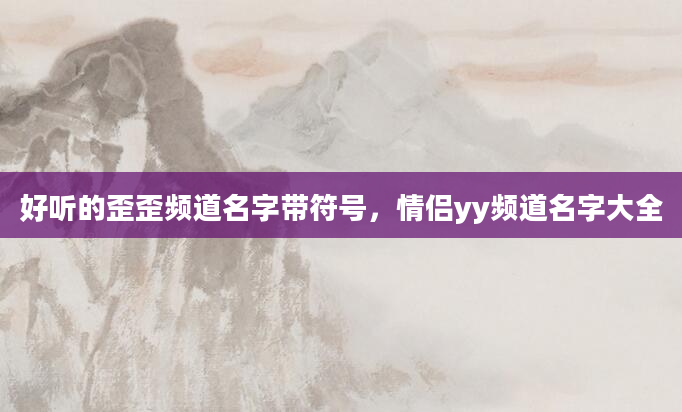 好听的歪歪频道名字带符号,情侣yy频道名字大全yy频道名字大全,有了YY之后还需要建立一个属于自己频道,因为这是一个大型的语音交流平台,来到这里的人不一定玩的都是一样的,所以为了能更准确的联系和沟通到你的游...2024-01-03
