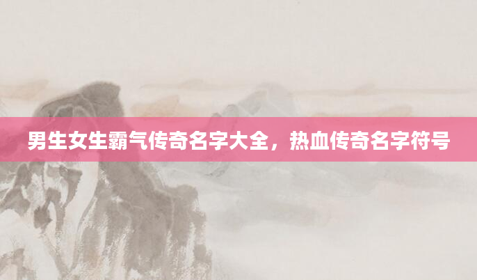 男生女生霸气传奇名字大全,热血传奇名字符号传奇名字,游戏如名在中国游戏史上当之无愧的传奇,从传奇进入中国市场一度统治了中国网络游戏数年,整个游戏充满了魔力,具有强烈的东方色彩,非常符合我们国人的爱好。...2024-01-03
