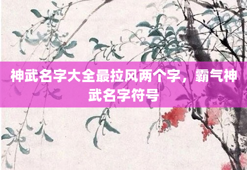 神武名字大全最拉风两个字,霸气神武名字符号神武名字,是回合制游戏《神武》在创建角色时,我们玩家要赋予角色的代号,也是你闯荡神武江湖的代号,所以在我们进入神武大战之前,就让我们为自己选一个好的名字,进入异...2024-01-03