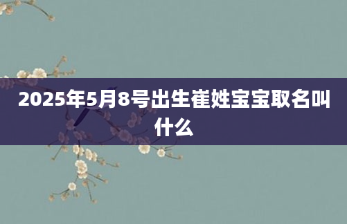 2025年5月8号出生崔姓宝宝取名叫什么我们说过,生辰八字无法变动,但是人的命格是会受到多方因素所影响的。通过八字取名字就是一种更改命格的表现,生辰八字和阴阳五行之间紧密相连,二者之间形成一种相互有制...2025-01-16