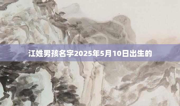 江姓男孩名字2025年5月10日出生的姓名不仅作为一个人的符号,对自身的发展有着潜在的影响,而且又是人与人之间进行交往所不能缺少的工具伴其一生,具有着一定的社会价值。那么下面让我们一起看下江姓男孩名...2025-01-16
