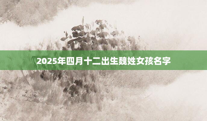 2025年四月十二出生魏姓女孩名字好的名字对孩子的运势和命理产生一定的影响,社交也会因为名字的关系而受到影响。有的人的名字听起来不雅,也会影响自己跟周围人的相处。可见,取个好名字的重要性有哪些是...2025-01-12