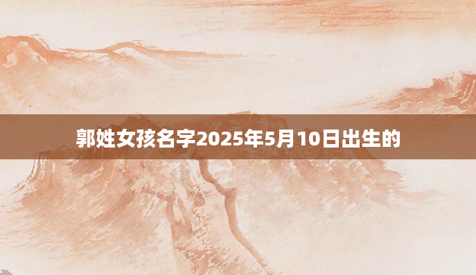郭姓女孩名字2025年5月10日出生的古代有名言:“有其名必有其实,名为实之兵也。”在《说》一书中,训义“名”为“命”,“名自命也”。起名是一种文化行为,也是一种文学艺术。名字的意义深远与否影响了受...2025-01-10
