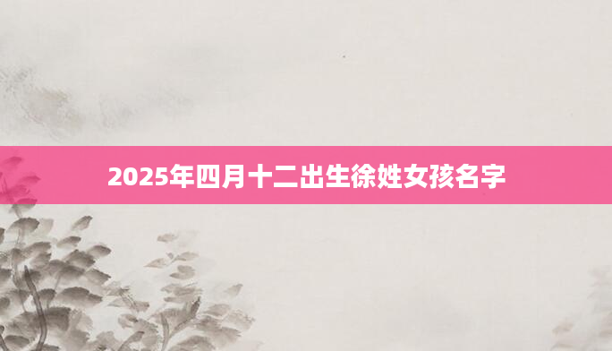 2025年四月十二出生徐姓女孩名字名字,好比人的衣裳。与人交往,除了给人留下形貌特征印象外。言谈吐语间,自己的名字就在人群间流传,名字,自然而然成了一个人的名片,成了一个人的标签。有时,在未见其...2025-01-10